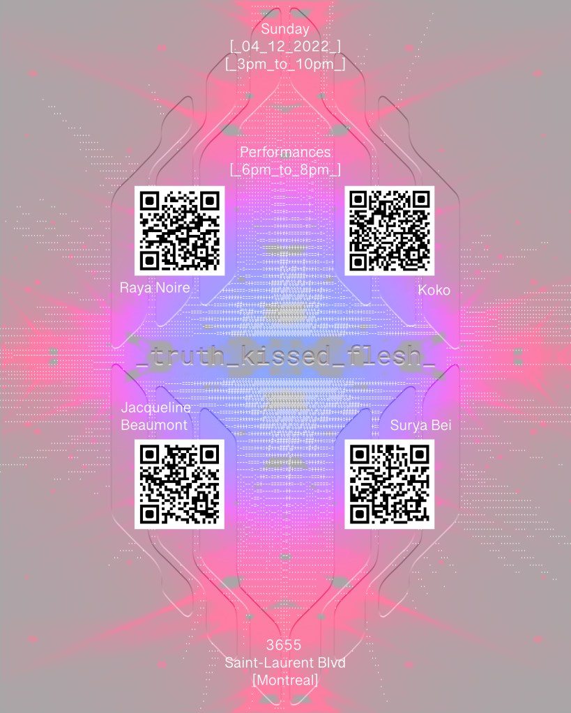 Printed Digital Multi-Ai Art Installation [52”x78”] at truth_kissed_flesh [exhibition] on the [04_12_22] in Montreal, Canada
